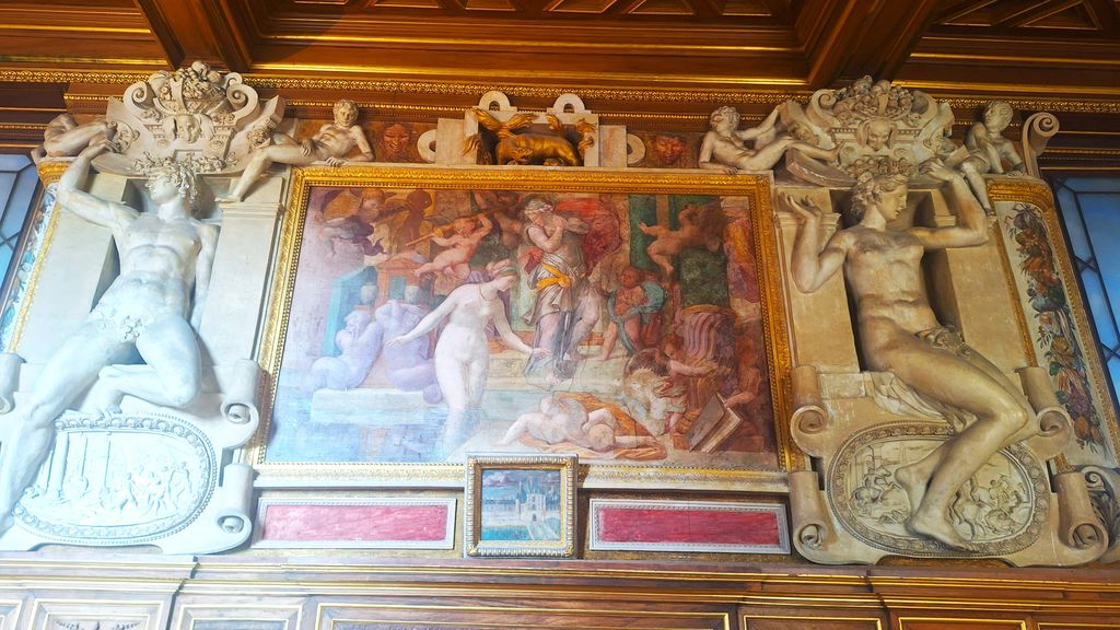 Fiecare panou decorativ este o lume în sine. Compoziția e mereu aceeași structural: o frescă în centru, înconjurată de stucaturi în relief și lambriuri de lemn sculptate. Dar temele variază – alegorii ale virtuților regale, scene mitologice, simboluri ale puterii și ale culturii Renașterii italiene pe care Francisc I o iubea cu o pasiune aproape bolnăvicioasă. Artistul principal a fost Rosso Fiorentino, adus special din Florența, iar stilul pe care l-a impus here – manierismul, cu figurile alungite, pozele studiate, paleta intensă – a dat naștere unui întreg curent artistic: Școala de la Fontainebleau.