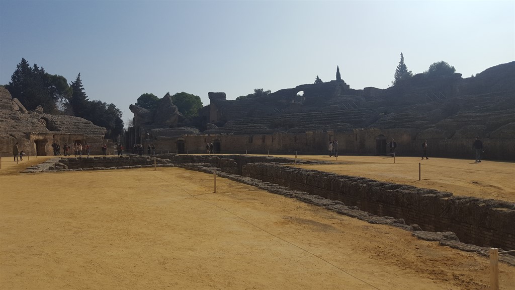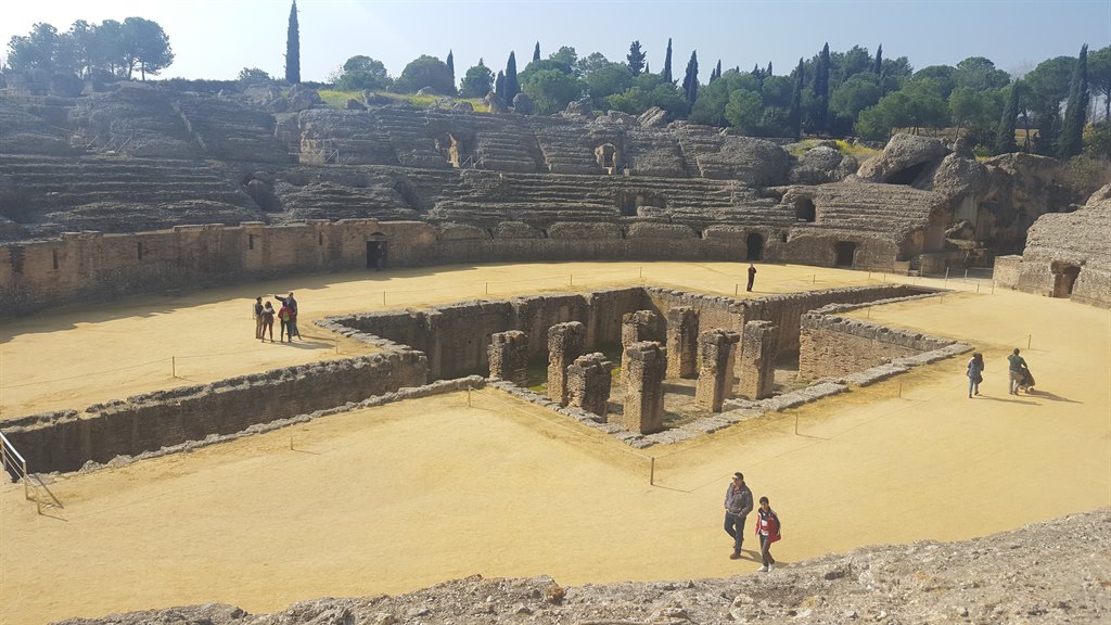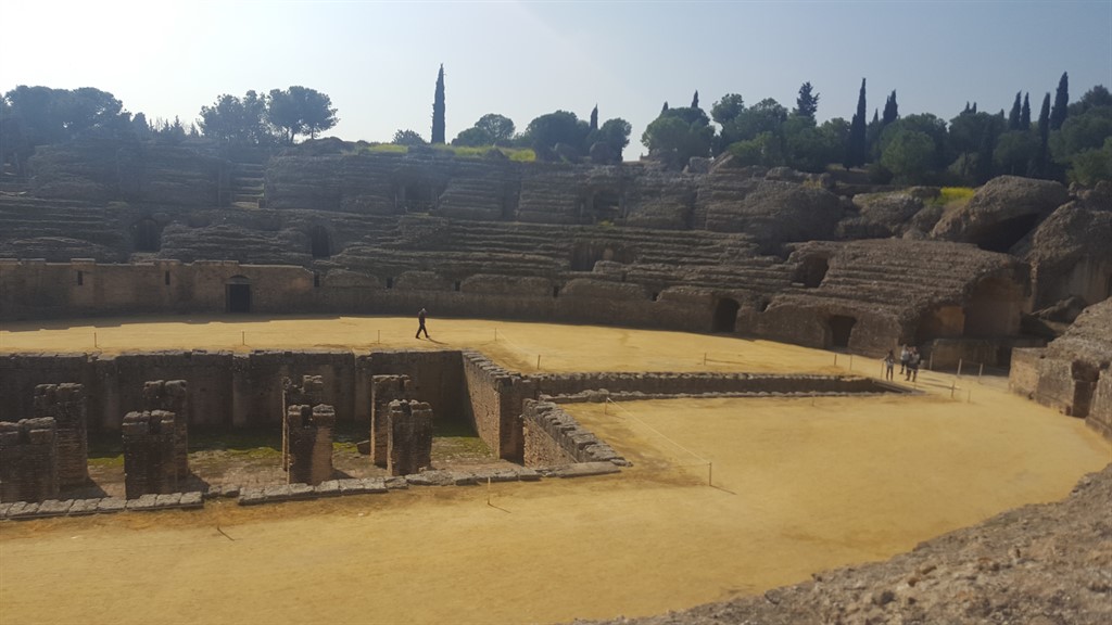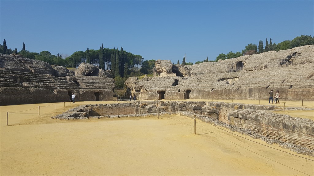 Probabil cel mai important sit arheologic din Peninsula Iberică, Italica este situat la 7 km în vestul Sevillei, fiind întemeiat de Scipio Africanul în anul 206 î.Hr. Oraș aristocrat încă de la începuturi, a fost locul de naștere a doi dintre cei mai importanți împărați romani, Traian și Hadrian. De pe vremea celui de-al doilea provin și marea parte a edificiilor escavate, dintre care cel mai important este chiar amfiteatrul amintit mai devreme, care putea găzdui peste 25.000 de persoane, fiind al treilea ca dimensiuni din întreg Imperiul Roman.