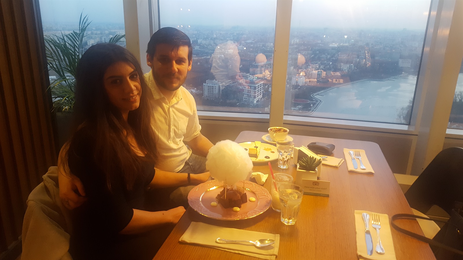 Panorama este așa cum mi-o aminteam din urmă cu 4 ani..incredibilă! Vezi aproape orice colț al orașului, din Băneasa până în Berceni, identificând cele mai importante puncte ale capitalei. Până la urmă acesta era cel mai important lucru pentru care am venit aici, însă nici mâncarea nu trebuie trecută cu vederea..