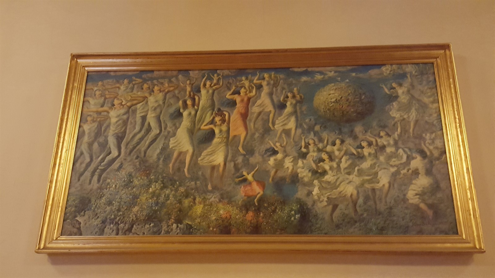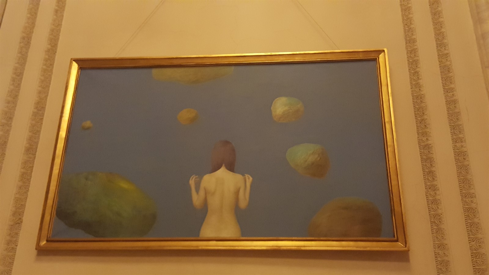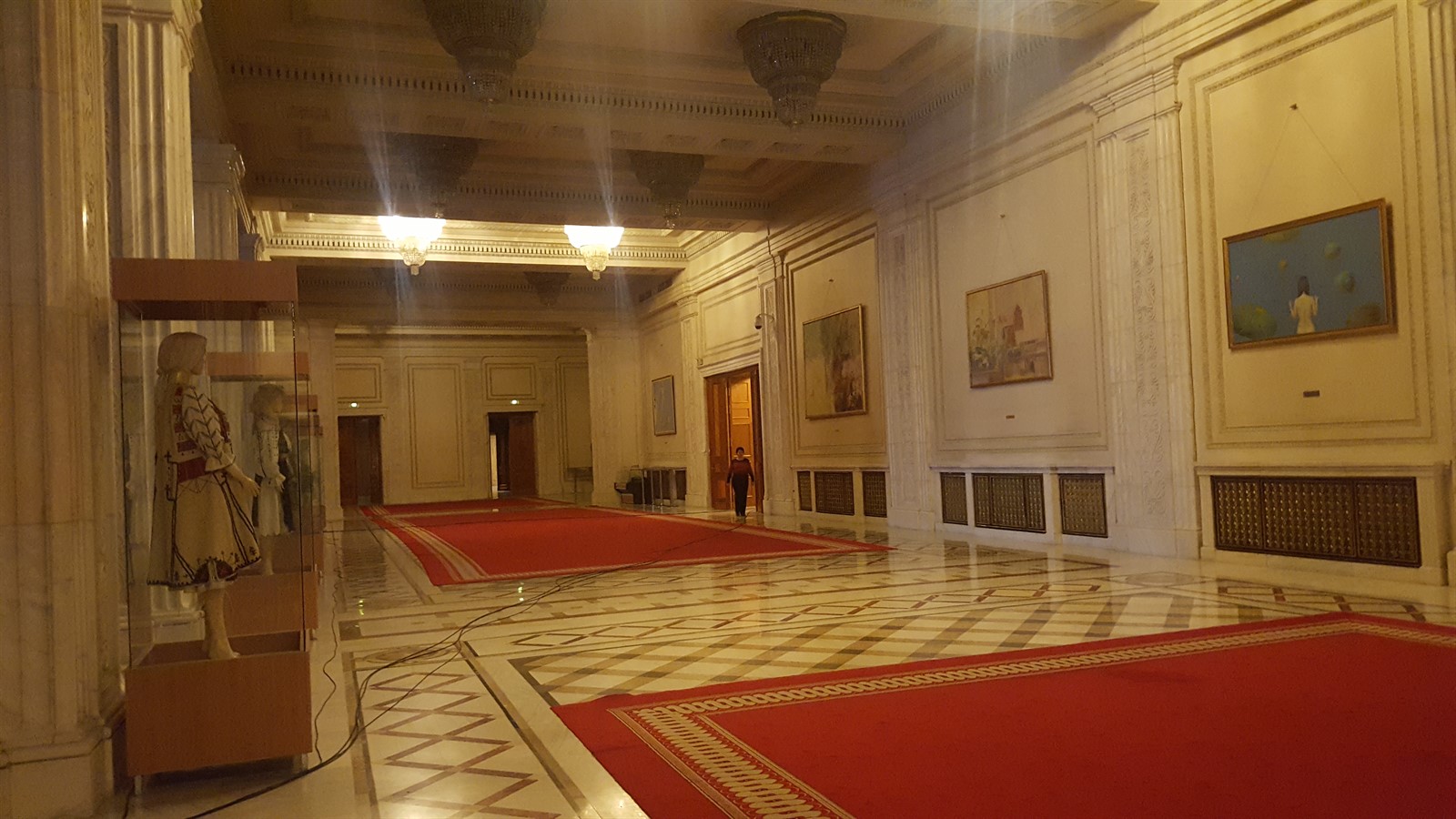 Am urcat înapoi spre parter, fiind convins că aveam să mai revenim la subsol, nu era posibil ca asta să fie tot (..mda) și am ajuns într-un salon lung, în care este o mică expoziție de porturi populare, dar și picturi ale unor artiști contemporani, dintre care se disting operele lui Sabin Bălașa, preferatul lui Nicolae Ceaușescu. Există suspiciuni că în două dintre tablourile expuse, muza artistului a fost chiar Elena Ceaușescu.