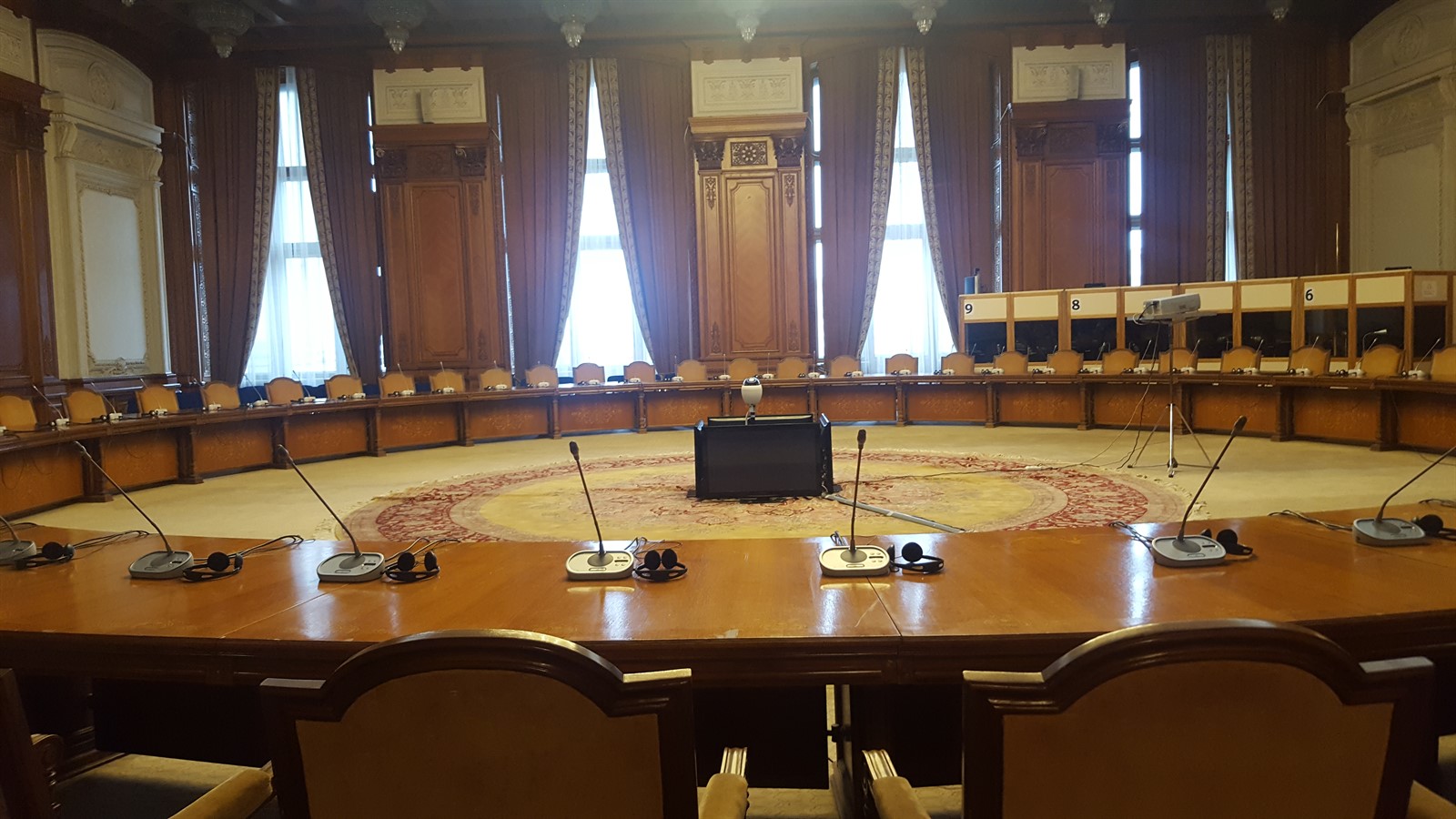 - în 1990 numai 400 de încăperi și 2 săli de ședințe erau finisate, dintr-un total de 1100 de camere.