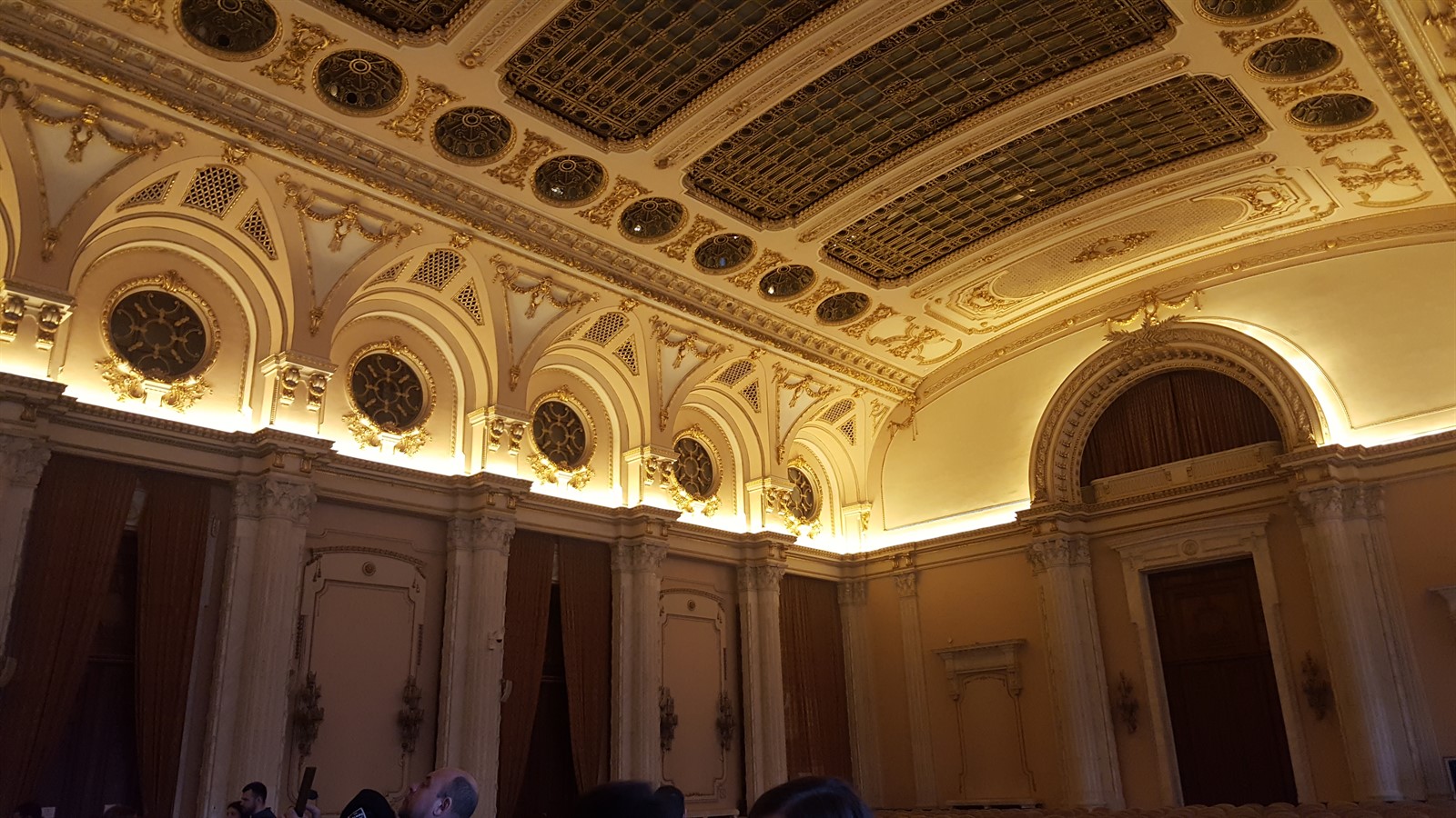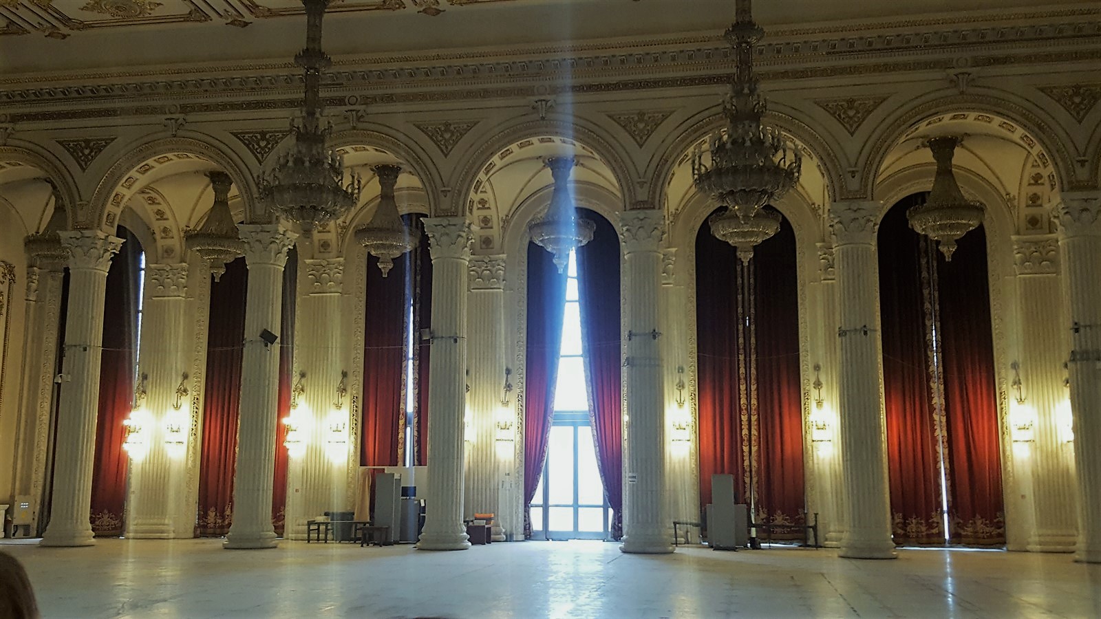 Am făcut o scurtă oprire în dreptul Sălii Nicolae Titulescu, folosită și astăzi de Președintele Camerei Deputaților și Președintele Senatului, pentru primiri oficiale. Specificul acesteia este dat de coloanele din marmură albă și capitele din bronz, mobilier de influențe baroce și picturi ale unor artiști români.