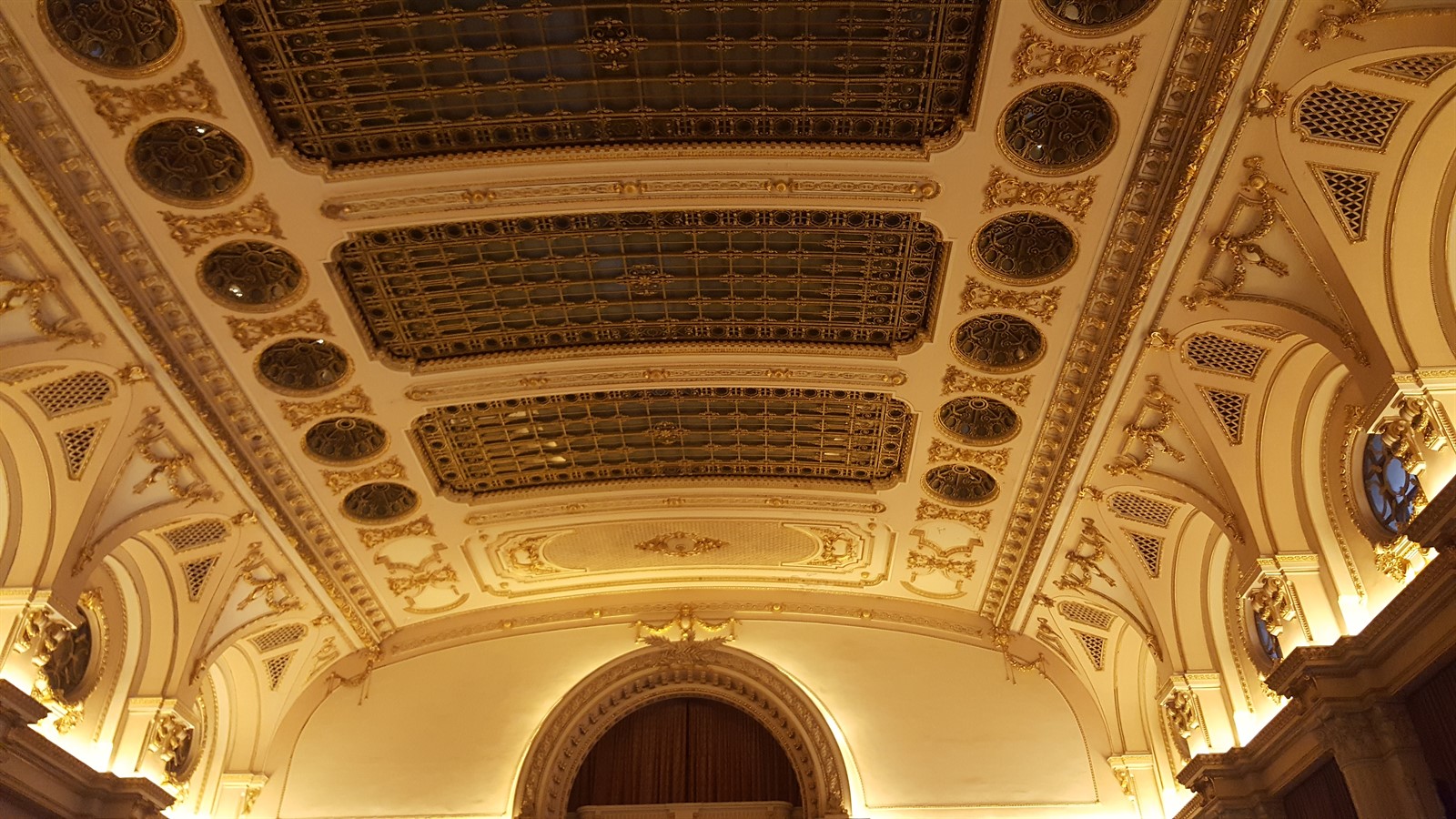 Plafonul, compus din 7 luminatoare ritmate, pe traversele sălii, executate din tablă aurită, este croit în boltă. Arhitectura sălii este eclectică, coloanele au capitelele corintice și sunt decorate cu frunze de stejar. Singura persoană care s-a adresat publicului de la balcon a fost Michael Jackson, în anul 1997, când a salutat fanii români cu un „Bună, Budapesta”.