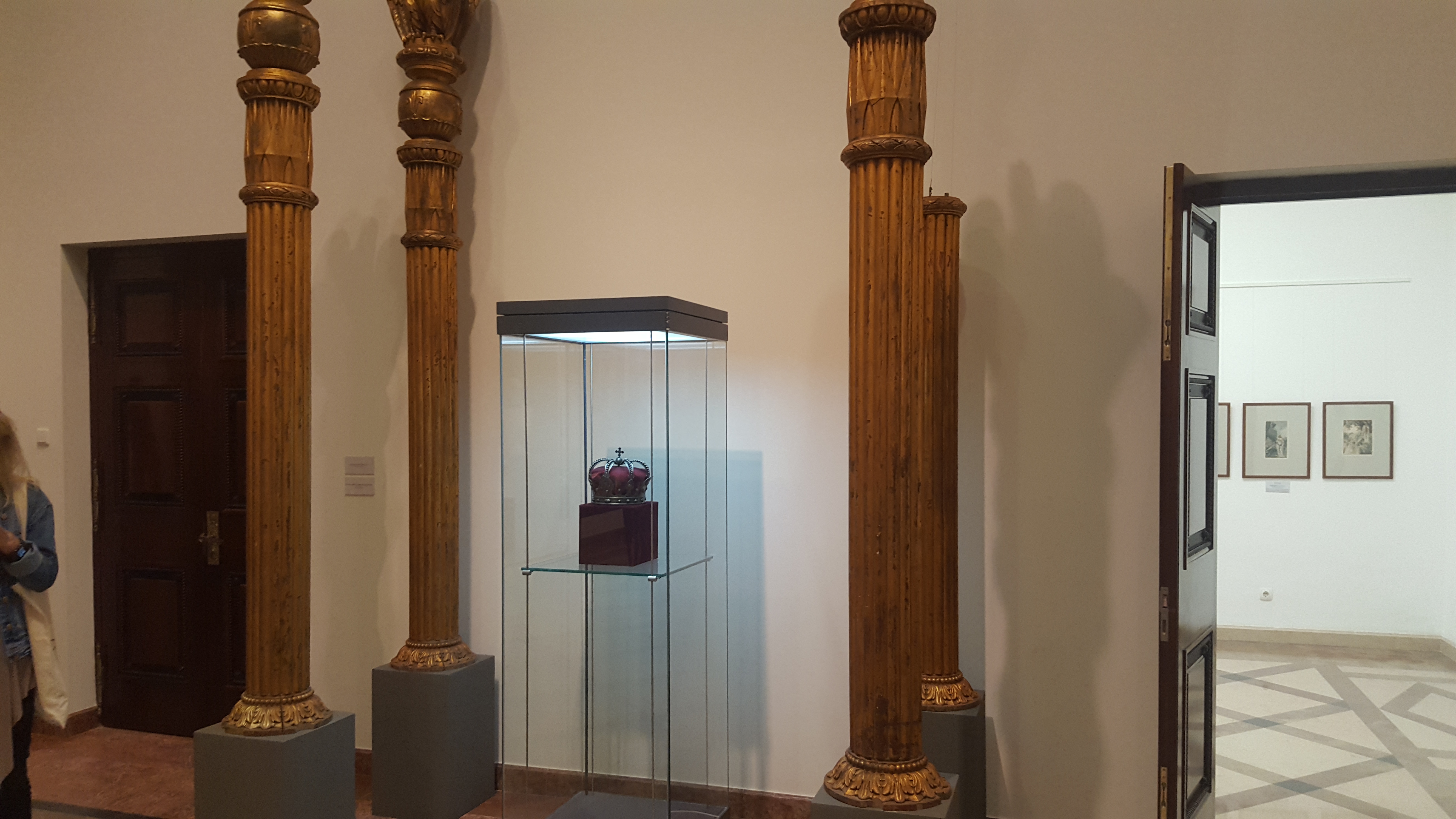 Până la finalul vizitei mai trecem printr-o cameră mică, în care sunt expuse portrete și busturi ale celor 4 regi, cât și a Reginelor Elisabeta si Maria, una dintre cele 3 coroane din oțel și câteva piese de mobilier originale.
