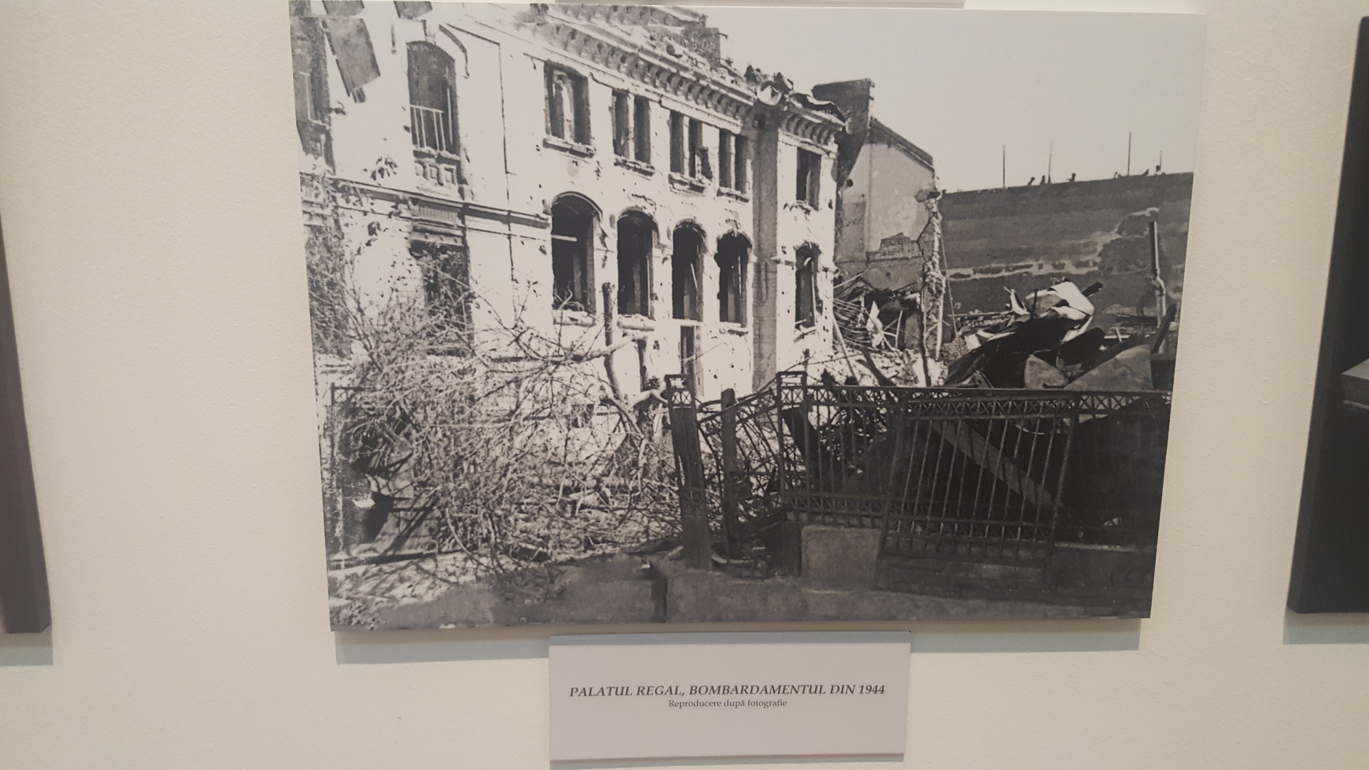 Următoarea cameră este destul de simplă și expune fotografii cu mare valoare istorică, ce prezintă situația în care se afla palatul după bombardamentul din 1944, dar și încoronarea Regelui Ferdinand și a Reginei Maria. Printre acestea, un tablou de mare importanță documentară, care înfățișează pe Carol I, cel care îl întâmpină pe împăratul Franz Josef, chiar în dreptul Palatului Regal.