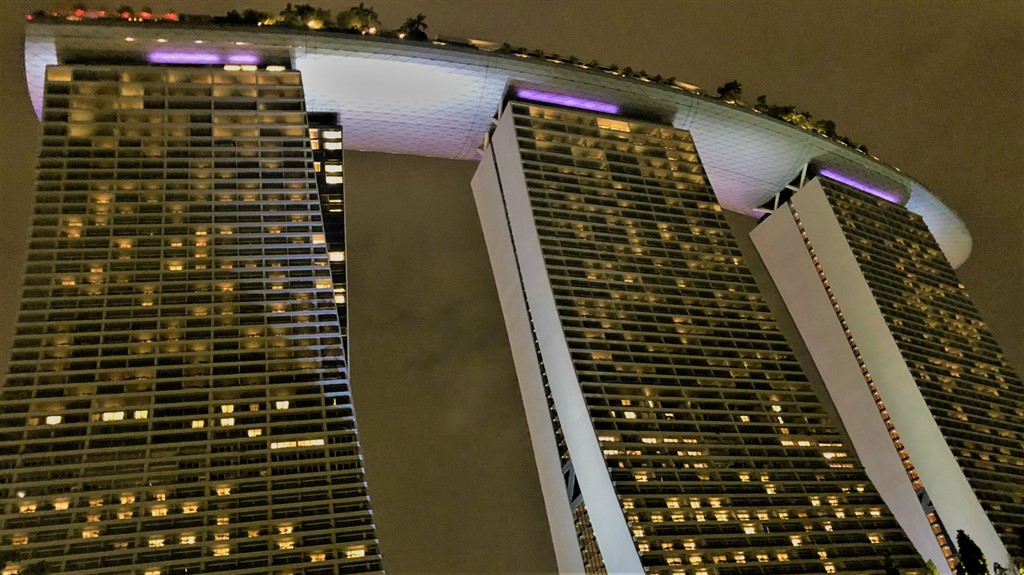 Marina Bay Sands — cele trei turnuri conectate prin SkyPark-ul de la etajul 57, cu faimoasa piscină infinity (accesibilă doar oaspeților hotelului). Observation Deck-ul de pe SkyPark este deschis tuturor (~27 SGD adult). Inaugurat în 2010, a costat peste 5,5 miliarde de dolari și include un mall uriaș, cazinou, muzeu, teatre și restaurante.