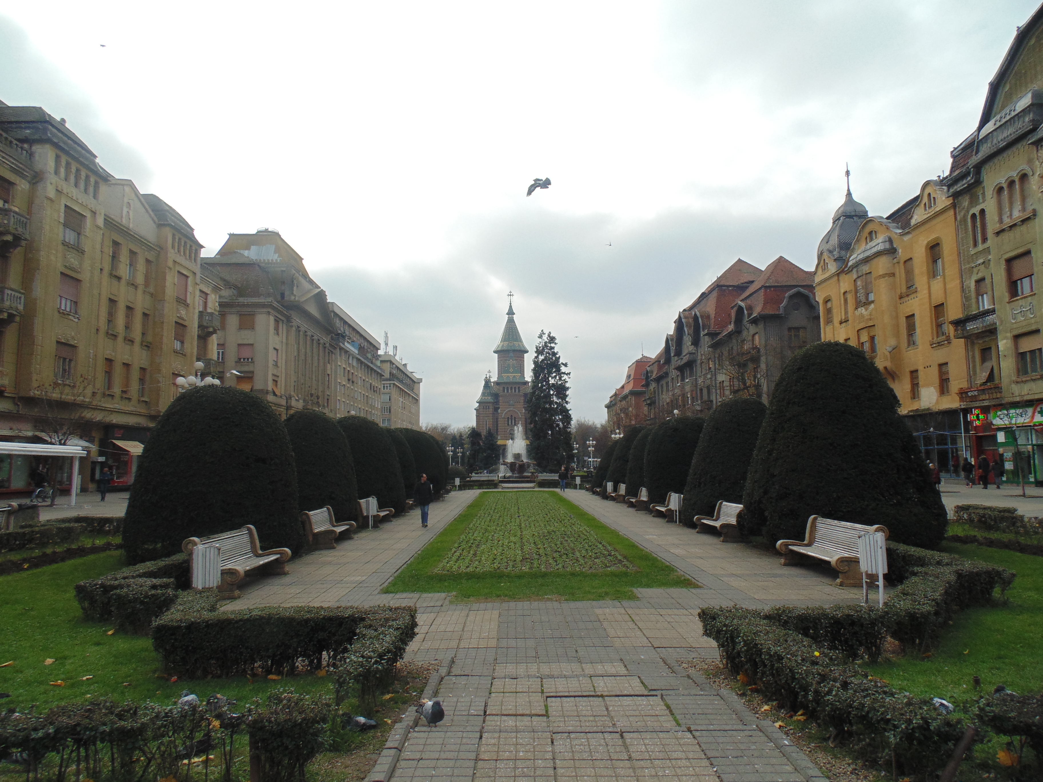 Pe la ora 11:00 eram în dreptul Catedralei Mitropolitane, care este din punctul meu de vedere simbolul orașului. Am străbătut Piața Victoriei până în dreptul Operei, unde ma intrat la o cafenea pentru a ne trezi cu un espresso și pentru a ne face un oarecare traseu. Timișoara, orașul supranumit ”Mica Vienă”, nu pot spune că are obiective turistice numeroase, celebre, sau un loc pe care să arzi de nerăbdare să îl vizitezi, însă per ansamblu este un oraș foarte drăguț care merită luat la pas.