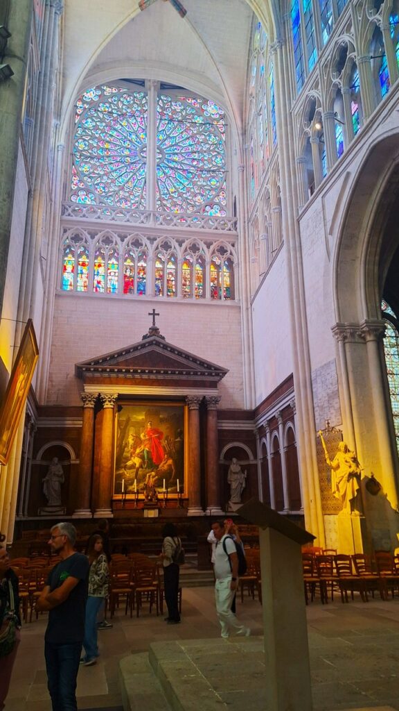 De la Place Plumereau am mers pe jos circa cincisprezece minute spre estul orașului vechi, unde se înalță Catedrala Saint-Gatien, dedicată primului episcop al orașului din secolul al III-lea. Este monumentul care ilustrează cel mai bine evoluția arhitecturii gotice franceze de-a lungul a patru secole de construcție.