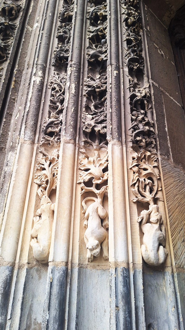 Fațada vestică, realizată între 1426 și 1547, reprezintă apogeul goticului flamboyant. Cele două turnuri, deși asimetrice ca înălțime, formează un ansamblu de o eleganță rară. Decorațiunile exterioare sunt de o bogăție aproape exuberantă: baldachine de piatră, pinacole, fleșe, statui în nișe, arcade oarbe, rozete sculptate.