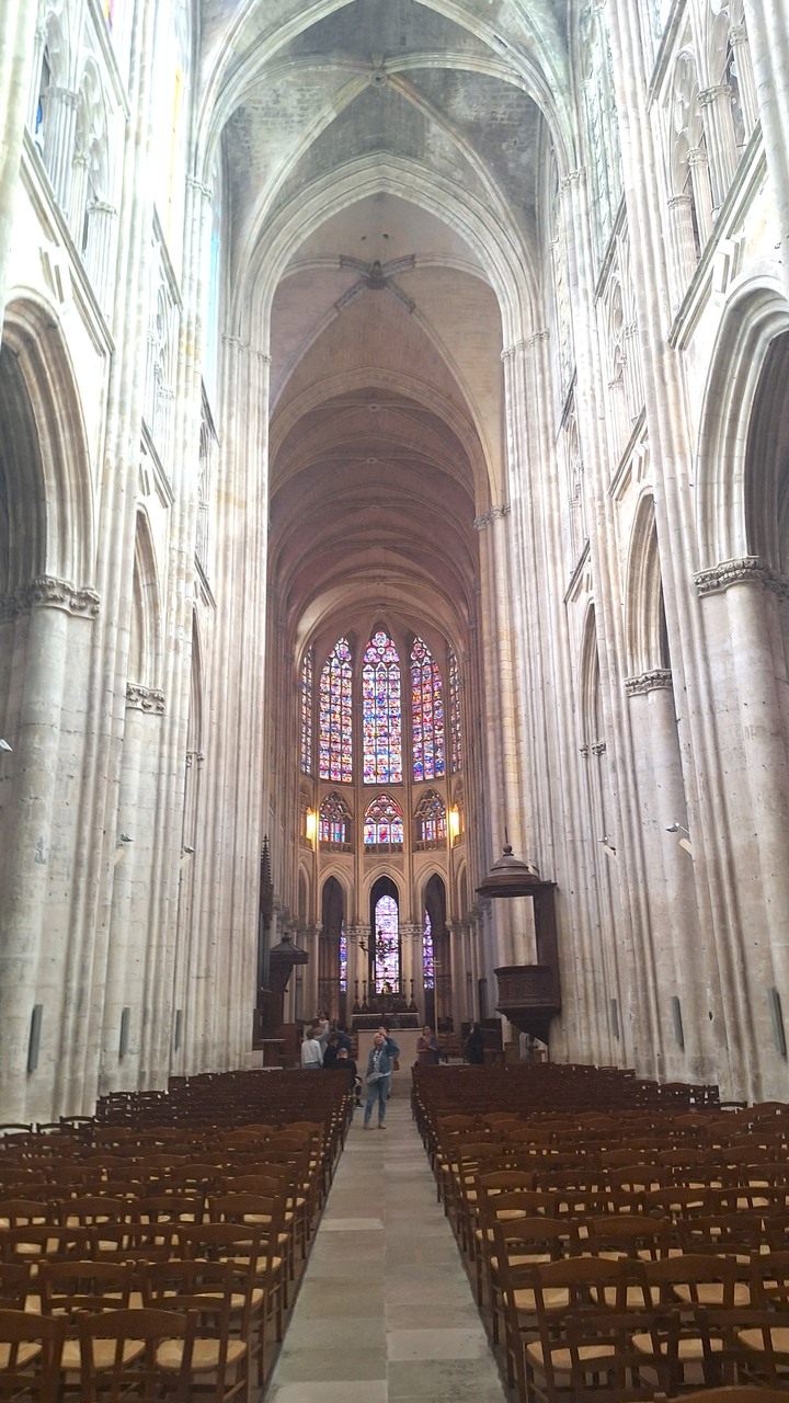 Interiorul impresionează prin verticalitate și lumină. Nava centrală, înaltă de aproape treizeci de metri, atrage privirea spre bolta gotică cu nervuri elegante. Dar gloria catedralei sunt vitraliile, care acoperă o suprafață totală de aproape două mii de metri pătrați.
