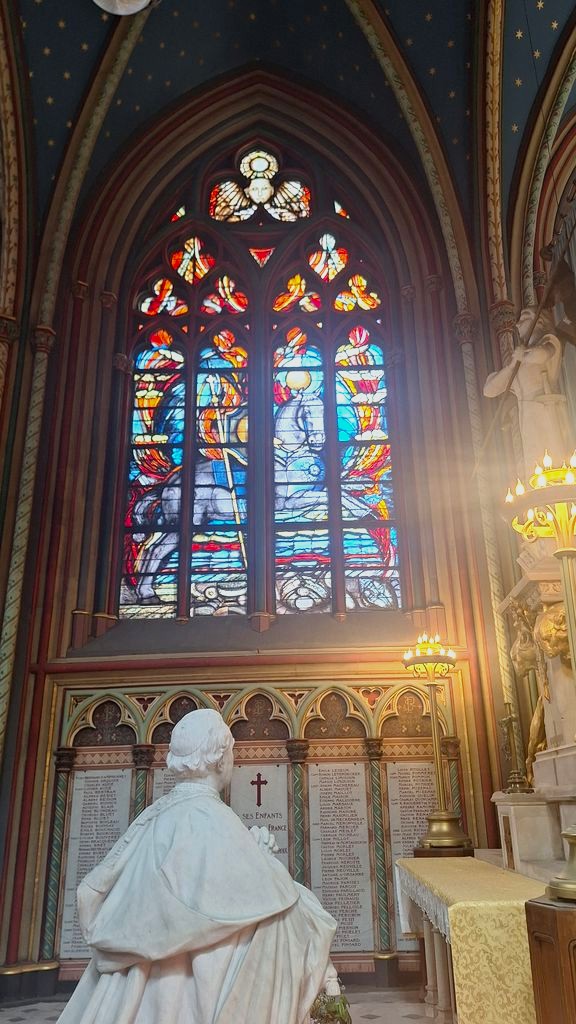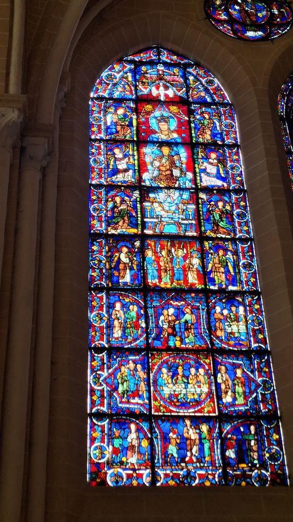 Așteptând să intrăm în măreața catedrală, eram gură cască la ce au putut construi francezii în urmă cu peste 800 de ani! Ce dimensiuni, ce finisaje și sculpturi și mai ales ce vitralii! Peste 170 de vitralii originale, realizând cea mai mare colecție medievală din lume! Cea mai frumoasă dintre ele, aceea în care este reprezentată Fecioara Maria în vestitul „albastru de Chartres”, extrem de similar cu „albastrul de Voroneț”. Numele picturii este „Notre-Dame de la Belle Verrière” și este spectaculoasă.