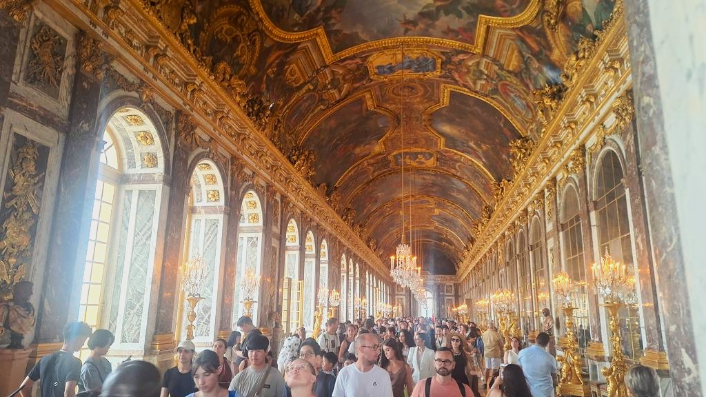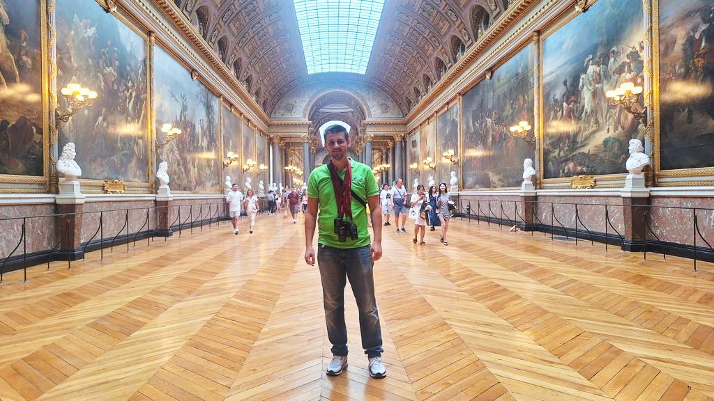 Am vizitat palatul în tihnă (pe cât posibil la Versailles), într-un tur de aproximativ 3 ore. Timp în care am rămas impresionați de Sala lui Hercule, cu al său tavan de 480mp complet pictat, apartamentele regale, Capela Regală și nu în ultimul rând, celebra Sala Oglinzilor – în care s-a semnat Tratatul de la Versailles.
