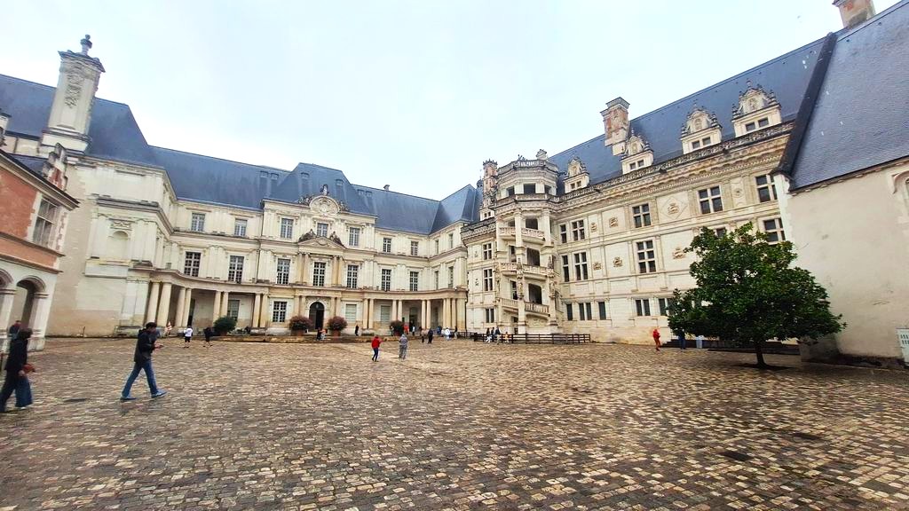 Dacă Beaugency l-am vizitat pe fugă, printre stropii de ploaie, la prânz urma să ajungem la primul castel din lista noastră – Castelul Blois. Un castel, construit în 4 epoci diferite și în 4 stiluri diferite. Un castel a cărui istorii plină de intrigi se întinde pe sute de ani. Am aflat povești despre asasinate, petrecute chiar în camera în care ne aflam și am văzut minunata scară spiralată a lui Francisc I.